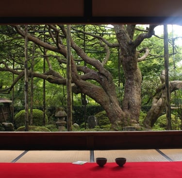 Explorez un temple ancien fondé au XIe siècle, célèbre pour ses plafonds tachés de sang historique et son jardin offrant une vue sereine sur la vallée à travers une bambouseraie, avec un thé matcha savouré sur la véranda.
