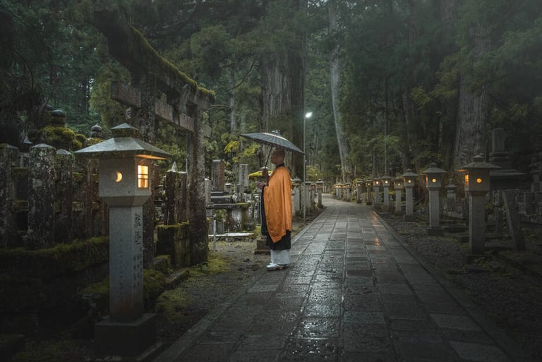 À seulement 1h30 d'Osaka, embarquez pour une expérience spirituelle unique au sommet d'une montagne sacrée, berceau du bouddhisme shingon. Éloigné du tumulte des villes, ce haut lieu de pèlerinage séduit par son cadre mystique : forêts épaisses de cèdres ancestraux, temples enveloppés de brume et une aura de sérénité intemporelle.